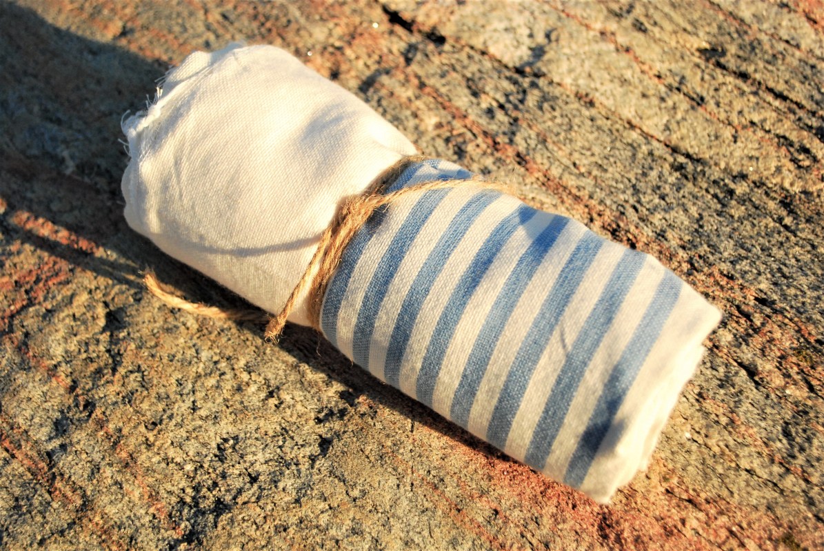 Håndvevet bomullsduk som finnes i mange ulike farger og kan brukes som piknikpledd, badehåndkle, omslagsskjørt og skjerf, i tillegg til duk. Er kjøpt av småskalaforhandlere på medinaen (markedet) i Essaouira.